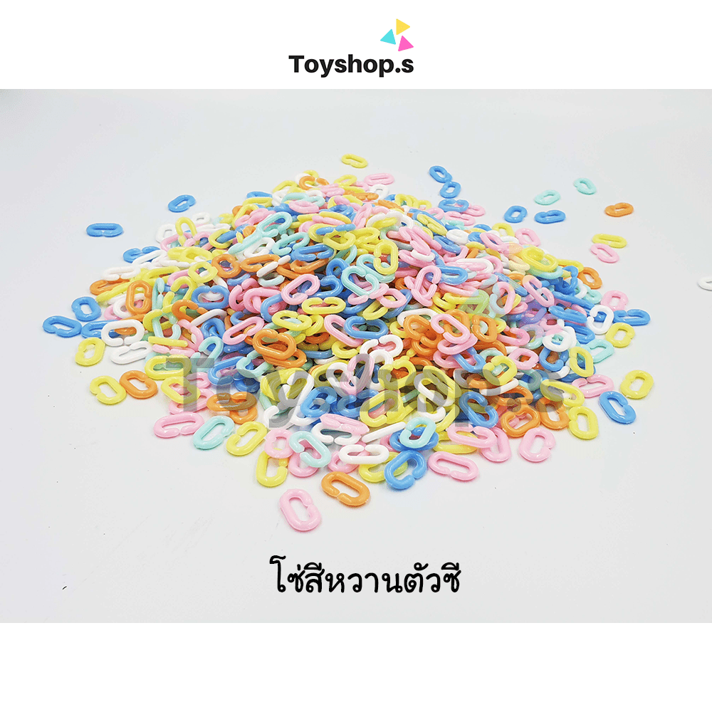 โซ่พลาสติก โซ่ของเล่น สำหรับนำมาร้อยเล่นหมากเก็บ หรือ ทำงานประดิษฐ์ เช่น ทำโมบาย ทำสายคล้องแมส